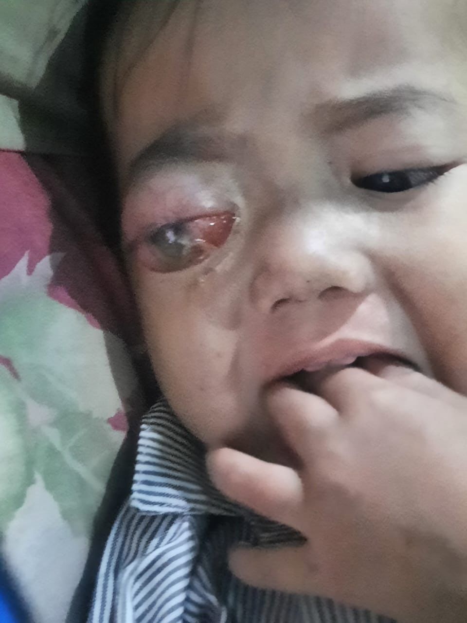 Selama beberapa hari,mata Dik Khalila memerah dan bengkak sampai matanya sulit terbuka. Ia terus menangis kesakitan. Sampai lebih dari satu minggu kemudian, mata Dik Khalila akhirnya bisa terbuka namun muncul bercak darah beku di matanya. Bengkaknya pun tidak kunjung menyusut.