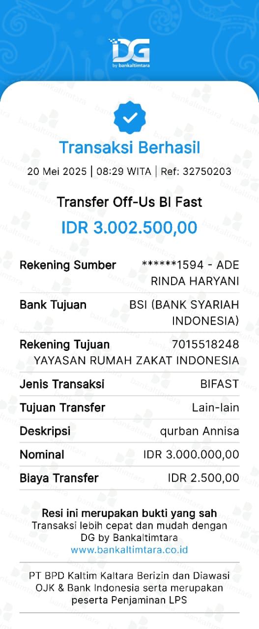 Disclaimer : SharingHappiness.org tidak mewakili dan tidak bertanggung jawab atas segala bentuk informasi pada halaman campaign ini, karena informasi di atas sepenuhnya milik campaigner (penggalang dana).