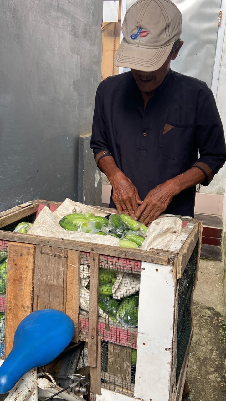 Sudah 4 tahun lamanya Abah Koswara menekuni pekerjaan yang ia jalani sekarang berjualan timun titipan dari orang lain. Setiap pack berisi 3-4 buah timun, dijual dengan harga Rp3.000. Itulah harapan kecilnya setiap hari, berkeliling menjajakan sayuran segar itu dengan sepeda tua yang rangkanya mulai rapuh dimakan usia, sama seperti tulang-tulangnya yang kian menua.